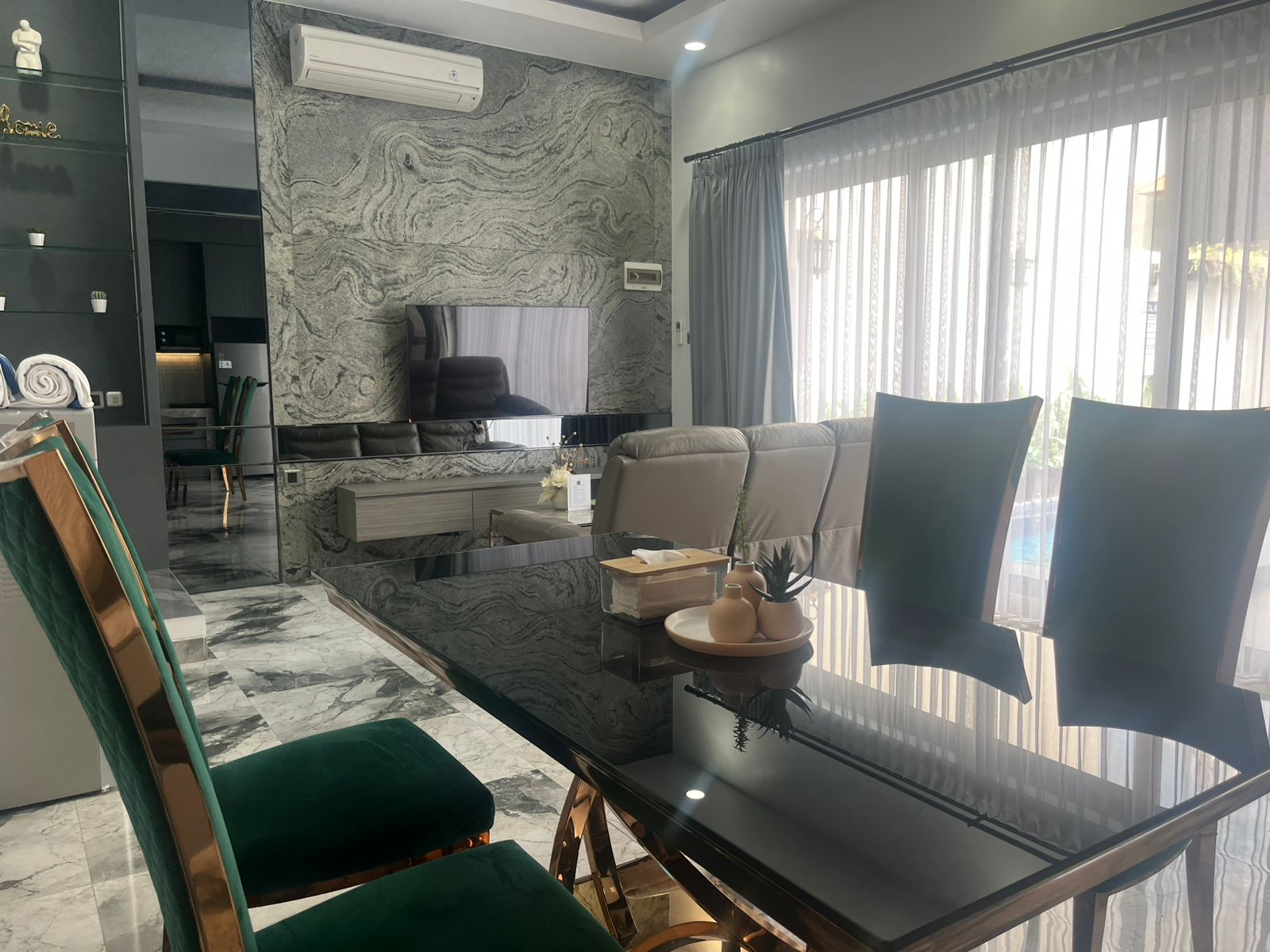 Our spacious and elegantly designed villas ensure maximum comfort with modern amenities. Each villa, measuring 30 x 40 meters, is equipped with air conditioning, Wi-Fi, smart TVs, Swimming pool, and a