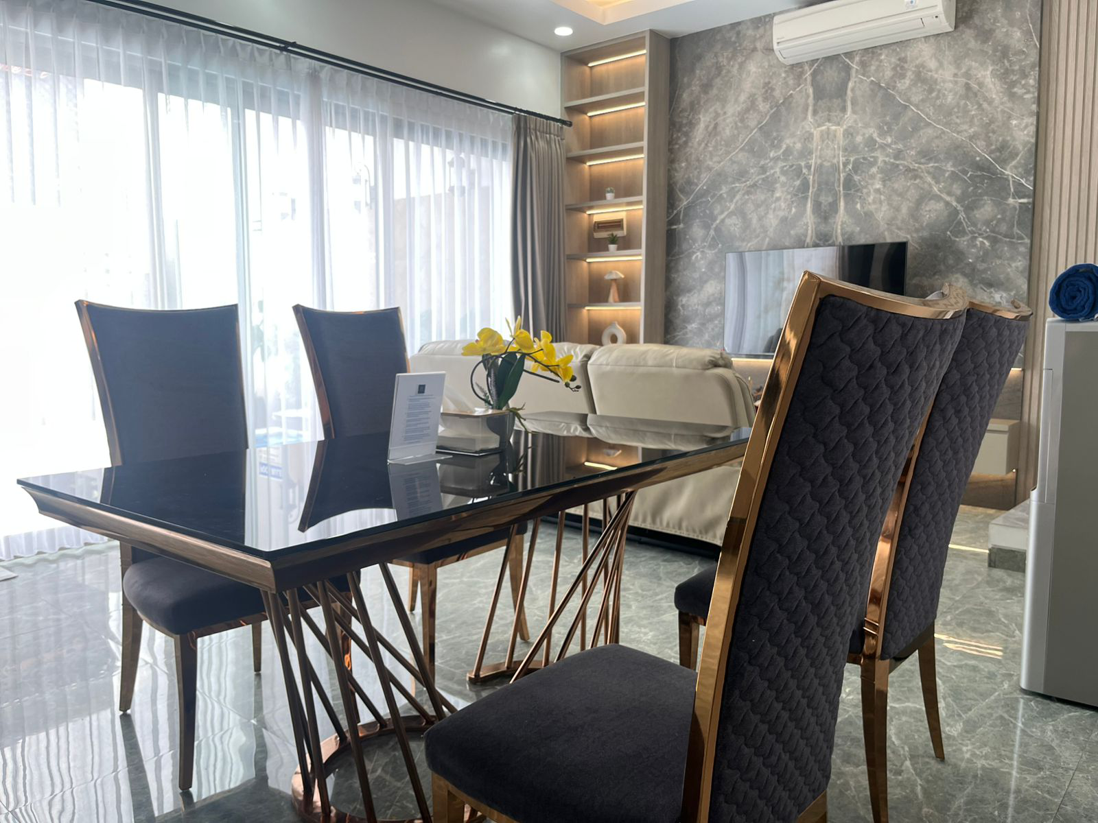Our spacious and elegantly designed villas ensure maximum comfort with modern amenities. Each villa, measuring 30 x 40 meters, is equipped with air conditioning, Wi-Fi, smart TVs, Swimming pool, and a